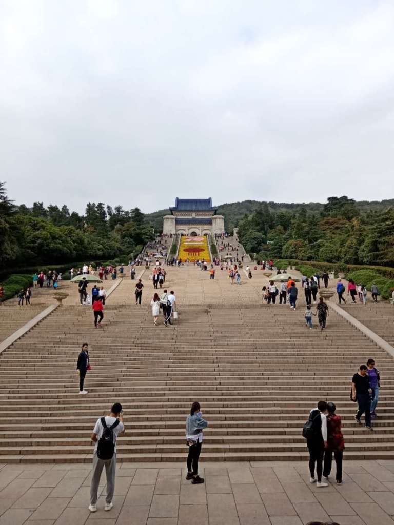 Last week, we went on a cultural excursion with our entire cohort to visit a historical site that is not only famous in Nanjing but is also well known throughout the entire country. This site is the Ming Xiaoling mausoleum at Purple Mountain. This site is where the founding emperor of the Ming dynasty, Zhu Yuanzhang is buried as well as the first ruler of the Republic of China, Sun Yat-sen. There are also many famous rulers throughout China’s very long history that have been buried here. They all chose this location because within the idea of Fengshui, this location is very ideal. Where the tombs are located, there is a mountain in the rear and water in the front as well as amazing views of the entire city.