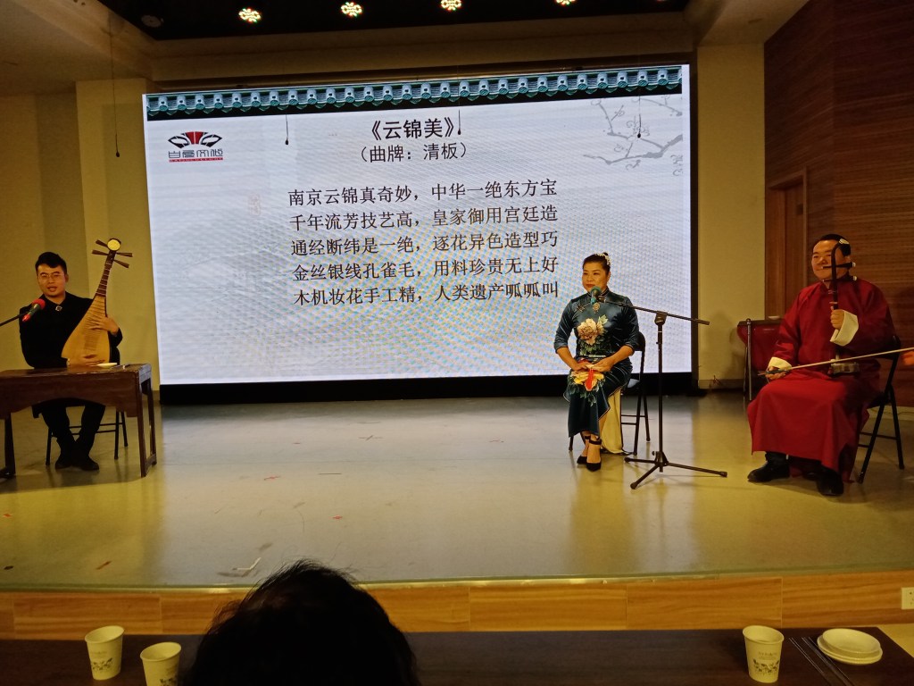 On Friday, I went to a live opera demonstration with my class at the Nanjing Baiju cultural center. Baiju is a folk art that draws its origins from the famous brocades that were made from the emperor in Nanjing. I wrote about this previously, and it includes at least two people make silk fabrics for the emperor and other nobility in ancient China. Because of the complexity of this art, a day of labor yielded only make a very small piece of fabric which meant each complete brocade piece would take on average at least three years to make. During this time, the workers would be very bored and tired of doing the same mind-numbing work day in and day out. The pay was low and conditions were poor, so to help pass the time and at the same time relieve some stress, they created Baiju.